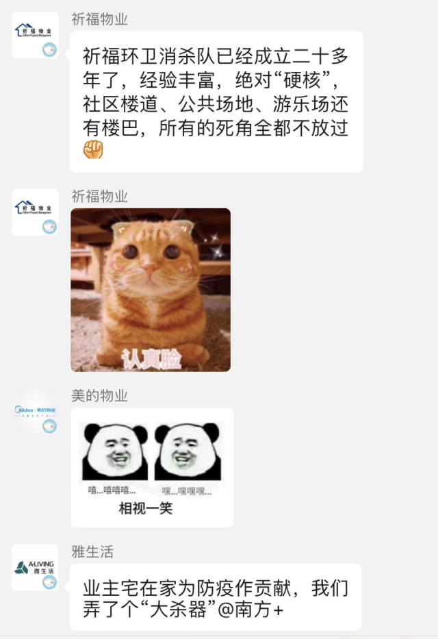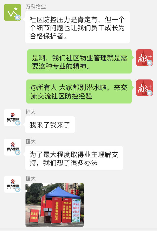 如今,不少房企和物业公司在社区防控方面积累了很多经验。这不,大佬们纷纷戴上了口罩,在微信群里聊得火热……
